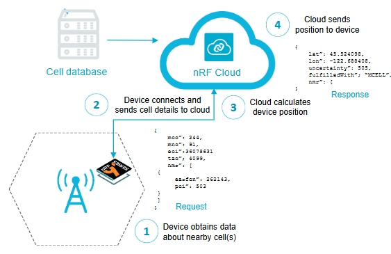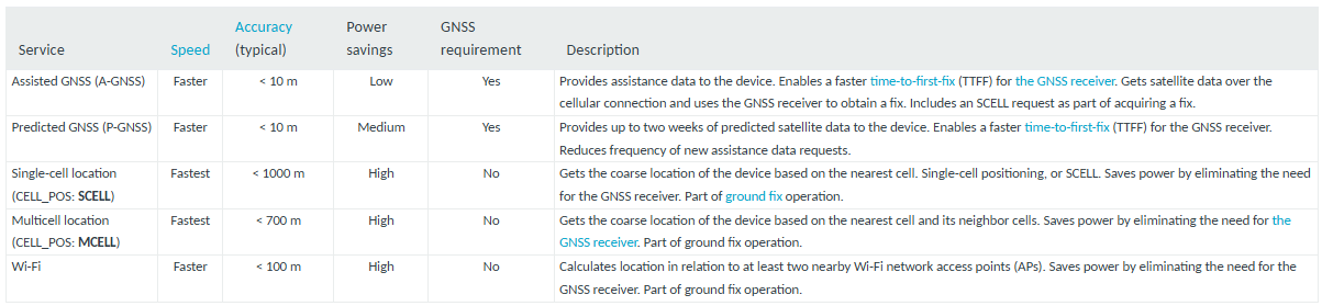 nRF Clouldでは Location Serviceの機能 としてAssisted GNSS(以降A-GNSS)・Predicted GNSS(以降P-GNSS)・Single-cell Location(以降SCELL)・Multi-cell Location(以降MCELL)・Wi-Fi Locationの機能を提供しています。