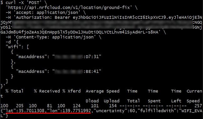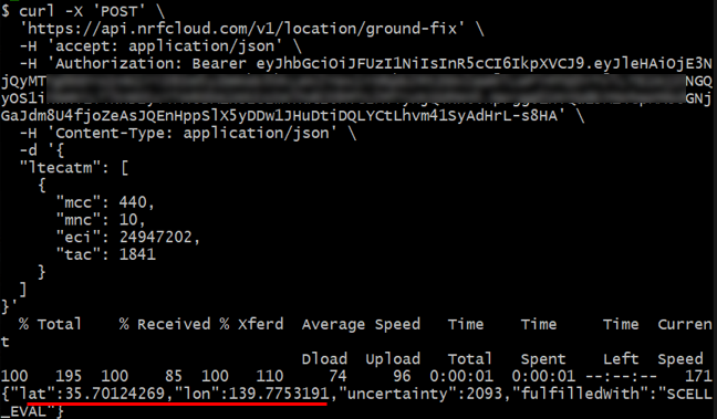 Location Serviceではデバイスからではなく、Application ServerからnRF CloudのREST APIを仕様して位置情報を取得する事も可能です。