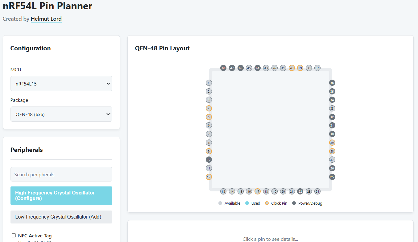 NordicのFAEが作成した「nRF54L Pin Planner 」という nRF54Lシリーズ向けのオープンソース・Webベースのピン割り当て支援ツールが公開されています。