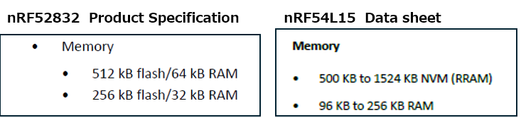 nRF52シリーズではNVMにFlashメモリを採用していましたが、nRF54LシリーズではRRAM(抵抗変化型)メモリを採用しています。