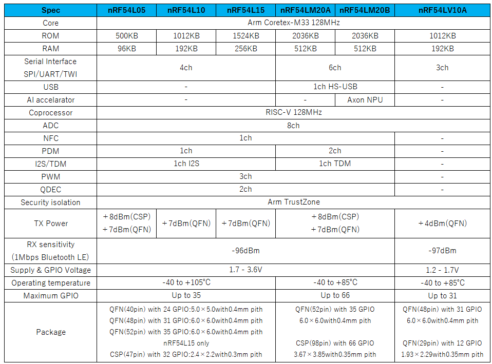 nRF54L05:nRF54Lの汎用展開シリーズ。ROM:500KB品
